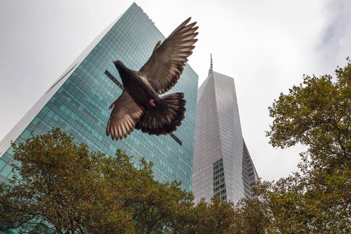 There has been a high number of birds flying into the glass towers on the northwest corner of Bryant Park, Oct. 1, 2019.