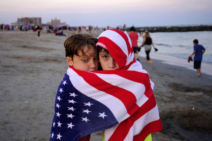 Coney Island - NYC's Summer Playground : For under a 3 dollar subway ride, Coney Island has been a summer destination for New Yorkers for over 200 years trying to beat the heat and hectic pace of the city during the summer. The resort town has been threaten with gentrification but still has been able to keep its urban working class charm. Keeping Warm at The BeachA pair of boys try to keep warm after a summer day of fun at the beach in Coney Island. Sunday June 23, 2019. Brooklyn, New York, USA