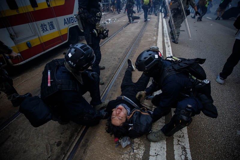 September 29, 2019 - Hong Kong, China: Clashes between Hong Kong Police and pro-democracy protesters in Hong Kong. Protests have been taking place since early June 2019 and were initially sparked by strong opposition to a proposed extradition bill, but have grown to include a more democratic system.