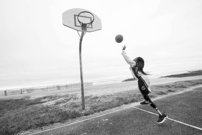 Amaya Williams practices her moves at the Heckscher State Park basketball court, Wednesday Jan. 23, 2019. Among many medical issues, Amaya was born without bones in her legs and by the age of 4 she was a double leg amputee. Today, the Copiague High School student is the first double leg amputee to play for a Long Island high school basketball team, her determination and unyielding desire to persevere and play the sport she loves has inspired an entire district.