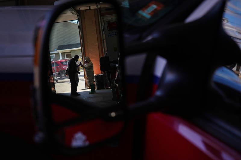 Special units of firefighters and E.M.T.s in Paterson, N.J., respond to 911 calls for suspected coronavirus, entering homes and putting themselves at risk. The grueling day offered a glimpse into the chaotic, risk-filled lives of emergency workers who are reaching directly into the jaws of the pandemic. “I can’t believe I’m saying this, but I’d almost rather go to a fire call,” said Brian Hirschmanner, a firefighter and E.M.T. “At least you can see what you’re fighting. And it eventually goes out.” But after almost one year, COVID-19 is still taking thousands of lives everyday, without an end in sight. Paterson Firefighter/EMT, Steve Fatovic, investigated the situation talking to a family member of the suspected PUI (Patient Under Investigation) calls in Paterson during Coronavirus Pandemic in Paterson, NJ, on March 24th, 2020. He rushed and left his medical bag that had his Hazmat Suit at the fire house and had to wear a paper suit which ripped later. Chang W. Lee/The New York Times