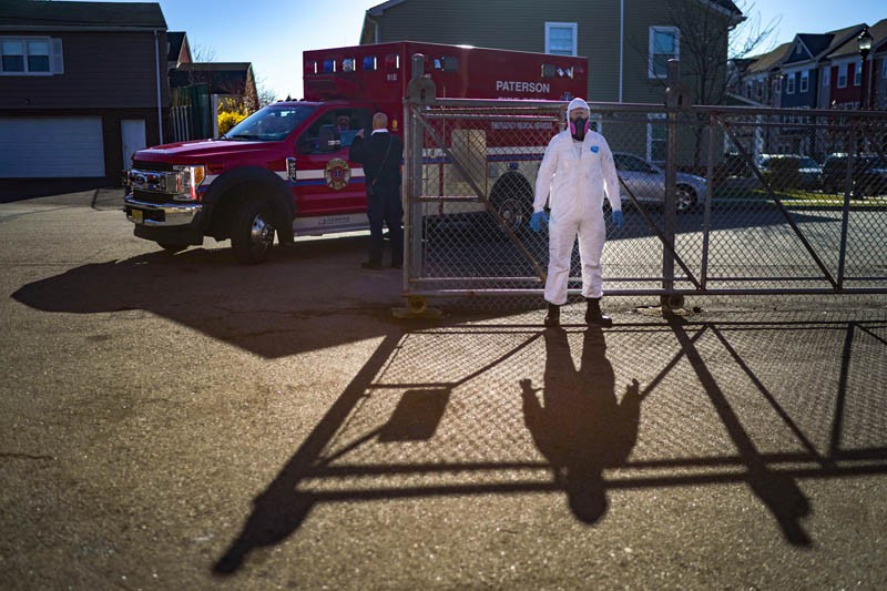 Special units of firefighters and E.M.T.s in Paterson, N.J., respond to 911 calls for suspected coronavirus, entering homes and putting themselves at risk. The grueling day offered a glimpse into the chaotic, risk-filled lives of emergency workers who are reaching directly into the jaws of the pandemic. “I can’t believe I’m saying this, but I’d almost rather go to a fire call,” said Brian Hirschmanner, a firefighter and E.M.T. “At least you can see what you’re fighting. And it eventually goes out.” But after almost one year, COVID-19 is still taking thousands of lives everyday, without an end in sight. Paterson Firefighter/EMT, Steve Fatovic, investigated the situation talking to a family member of the suspected PUI (Patient Under Investigation) calls in Paterson during Coronavirus Pandemic in Paterson, NJ, on March 24th, 2020. He rushed and left his medical bag that had his Hazmat Suit at the fire house and had to wear a paper suit which ripped later. Chang W. Lee/The New York Times