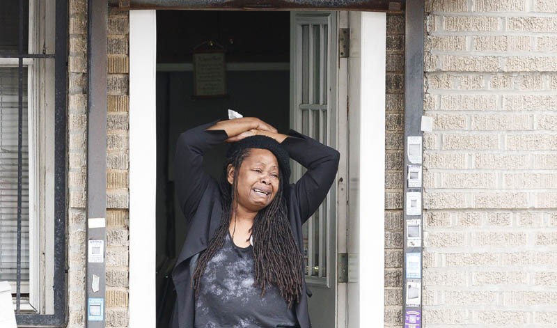 EXHIBIT AWARD - Bryan R. Smith – Independent – “Queens Funeral Home Works To Move Over 30 COVID-19 Victims To Upstate Crematorium” - Dr. Emancia Neil cries in there doorway of her family medicine office while people react to upsetting news about a loved one across the street from the Bronx-Lebanon Hospital Center in the Bronx, New York, USA, on 09 April 2020. Neil lost her mother Minnetta Parks, 85, to complications from a coronavirus infection the week before.
