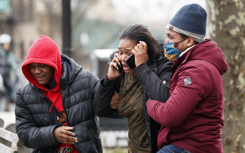 EXHIBIT AWARD - Bryan R. Smith – Independent – “Queens Funeral Home Works To Move Over 30 COVID-19 Victims To Upstate Crematorium” - A family reacts to upsetting news about a loved one outside of Bronx-Lebanon Hospital Center in the Bronx, New York, USA, on 09 April 2020. The number of patients being admitted to hospitals in New York City, which is still considered to be the epicenter of the coronavirus outbreak in the United States, grew by the smallest amount in weeks but 799 people died between Wednesday and Thursday, which was another single day high for deaths.