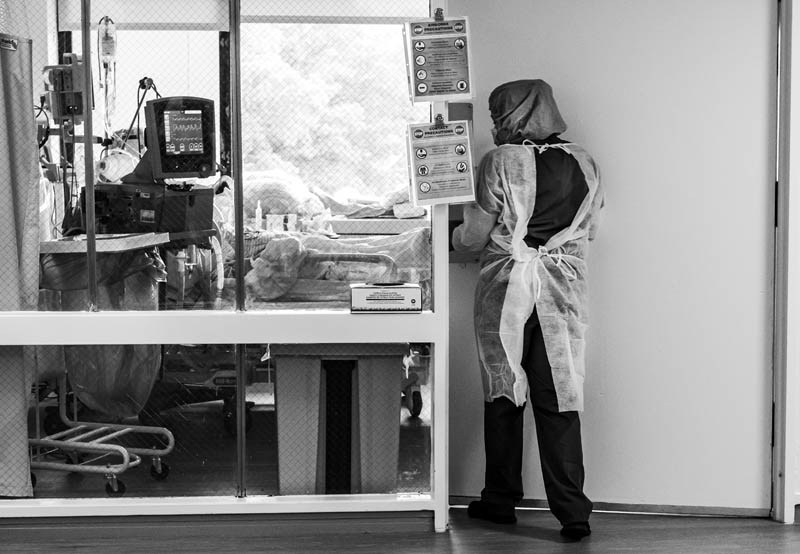 EXHIBIT AWARD - Lee Weissman – Northwell Health - “Covid Unit Life” - A nurse enters a room of a Covid 19 patient the ventilator rehab unit at Glen Cove Hospital on June 5, 2020.