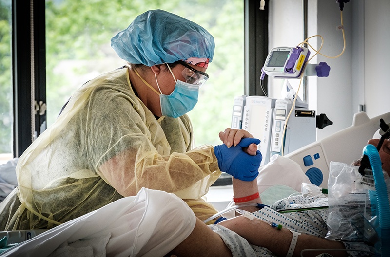 EXHIBIT AWARD - Lee Weissman – Northwell Health – “Compassion and Strength” - True compassion being shown by a healthcare worker inside a Covid ventilator rehab unit at Glen Cove Hospital on June 5, 2020.