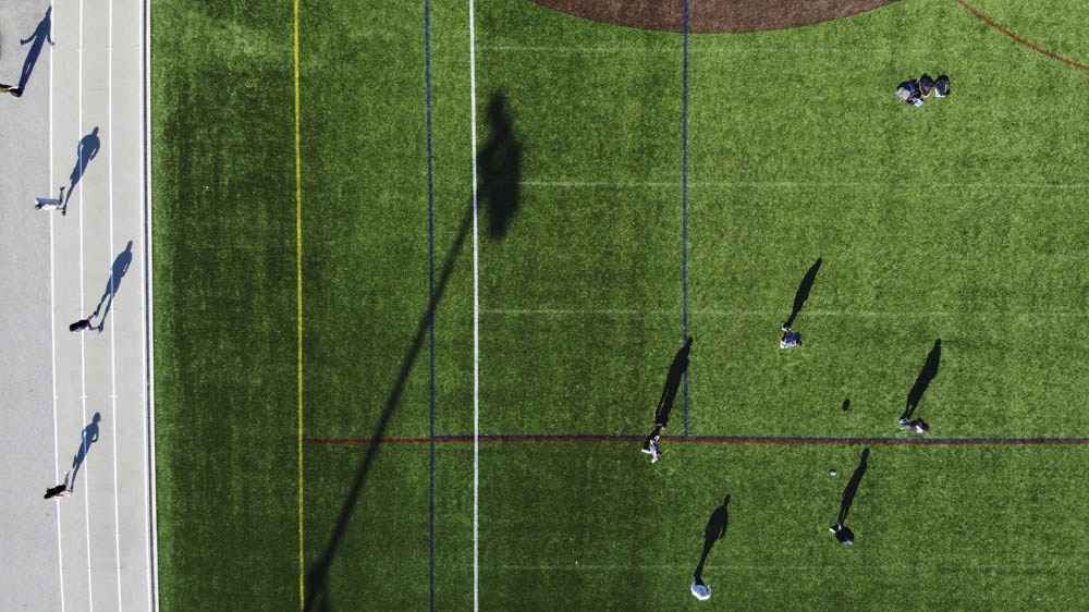 HONORABLE MENTION - David Goldman – The Associated Press – “The Spaces We Filled Now Filled With Space” - Northeastern University students kick a soccer ball around while social distancing on a field as others run around the track, Thursday, March 26, 2020, in Boston. The students usually have three times as many people meet for their regular pick-up games but many went home after the school closed.
