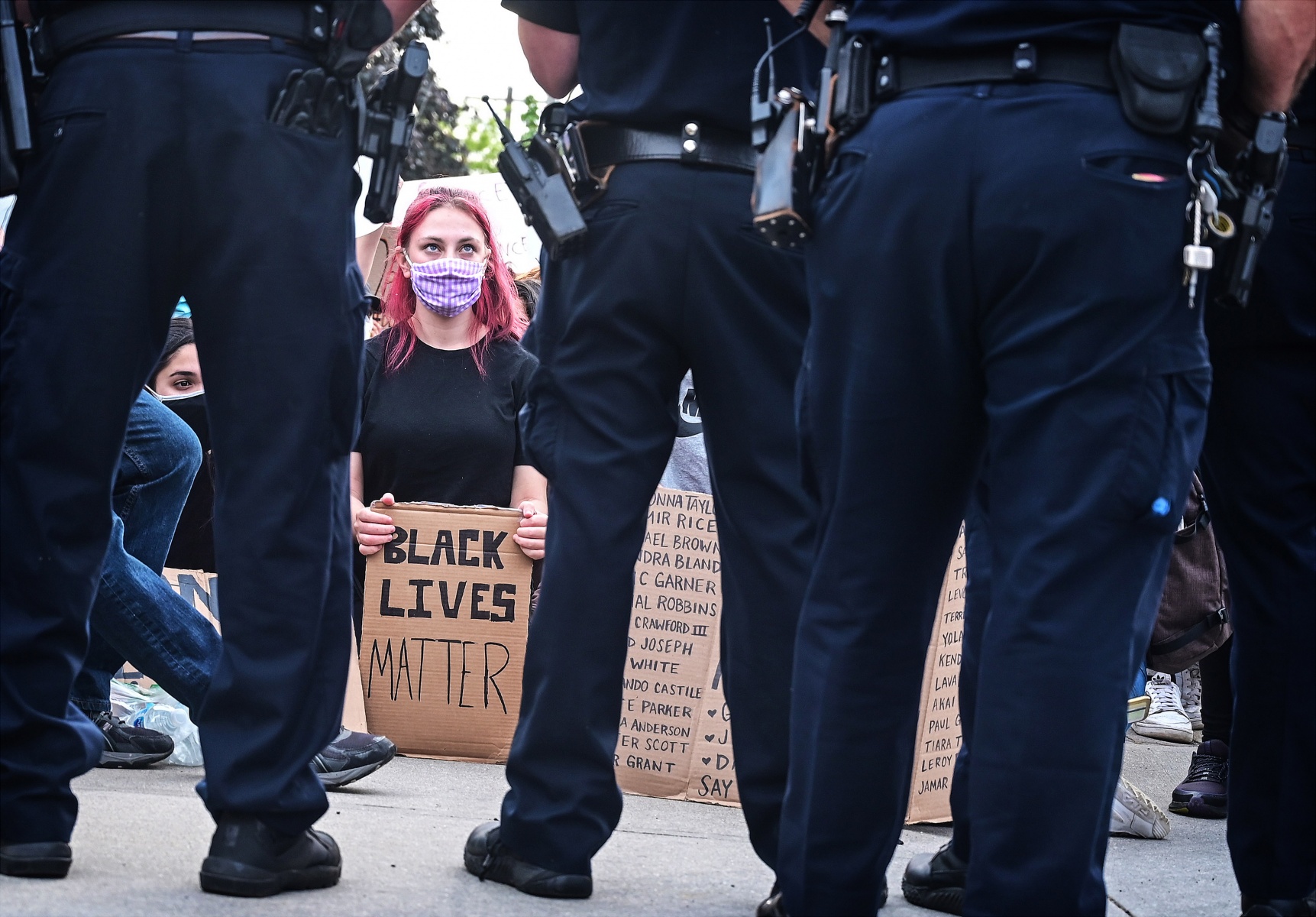 EXHIBIT AWARD - Thomas A. Ferrara – Newsday – “Black Lives Matter, The Suburban Movement” -Protestors, and allies of the Black Lives Matter movement, confront Nassau County Police officers during a protest in the Long Island town of Merrick, NY. on the evening of June 2, 2020. Protests such as these broke out in cities and small towns all over the country the in wake of the police involved death of George Floyd in Minneapolis.