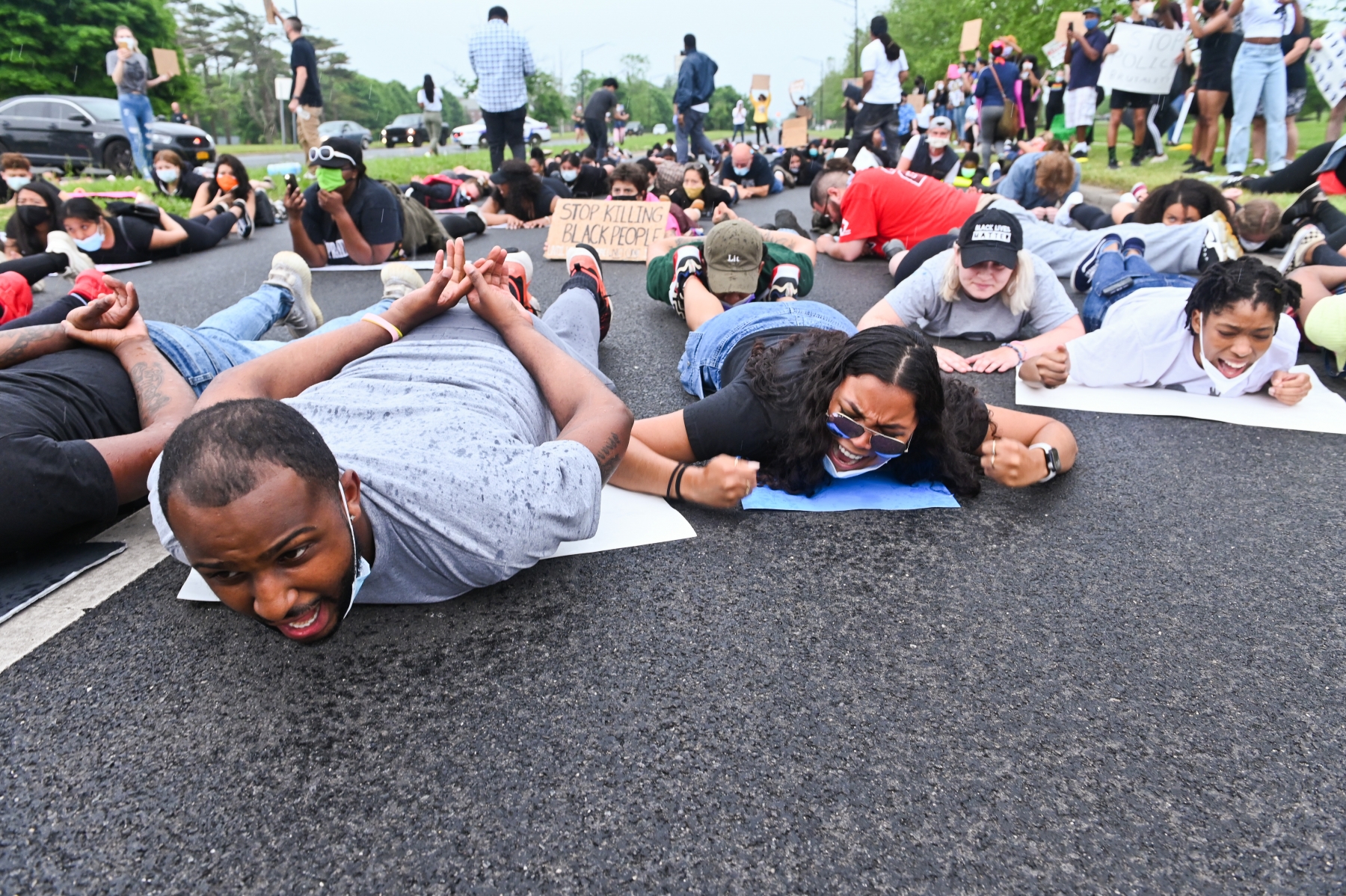 HONORABLE MENTION - Steven Pfost – Newsday – “Long Island March for Racial Justice” - Protestors chant on the ground while walking down Carleton Avenue in Central Islip, Friday, June 5, 2020.