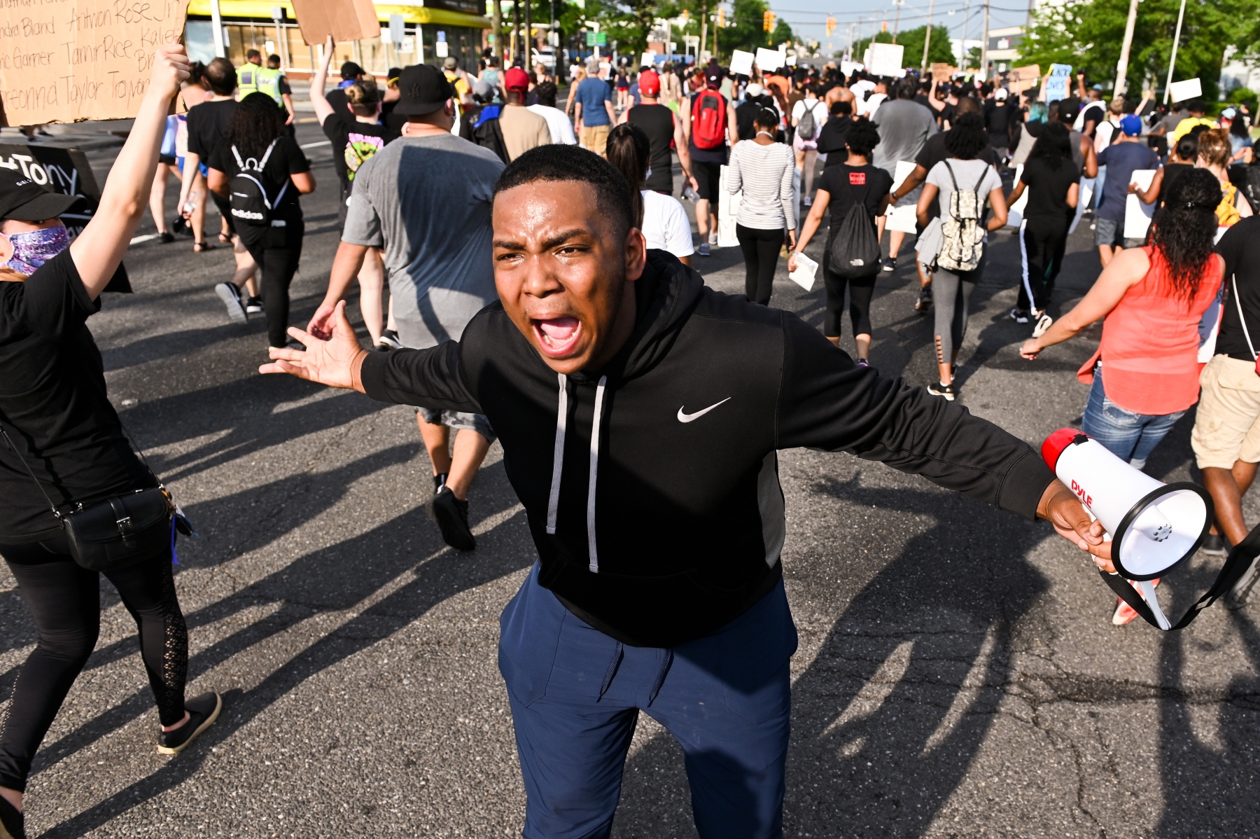 HONORABLE MENTION - Steven Pfost – Newsday – “Long Island March for Racial Justice” - Jahshua Taylor, of Westbury (cq), shouts as protestors walk down Old Country Road from Westbury towards Garden City in the death of George Floyd, Saturday, June 6, 2020.