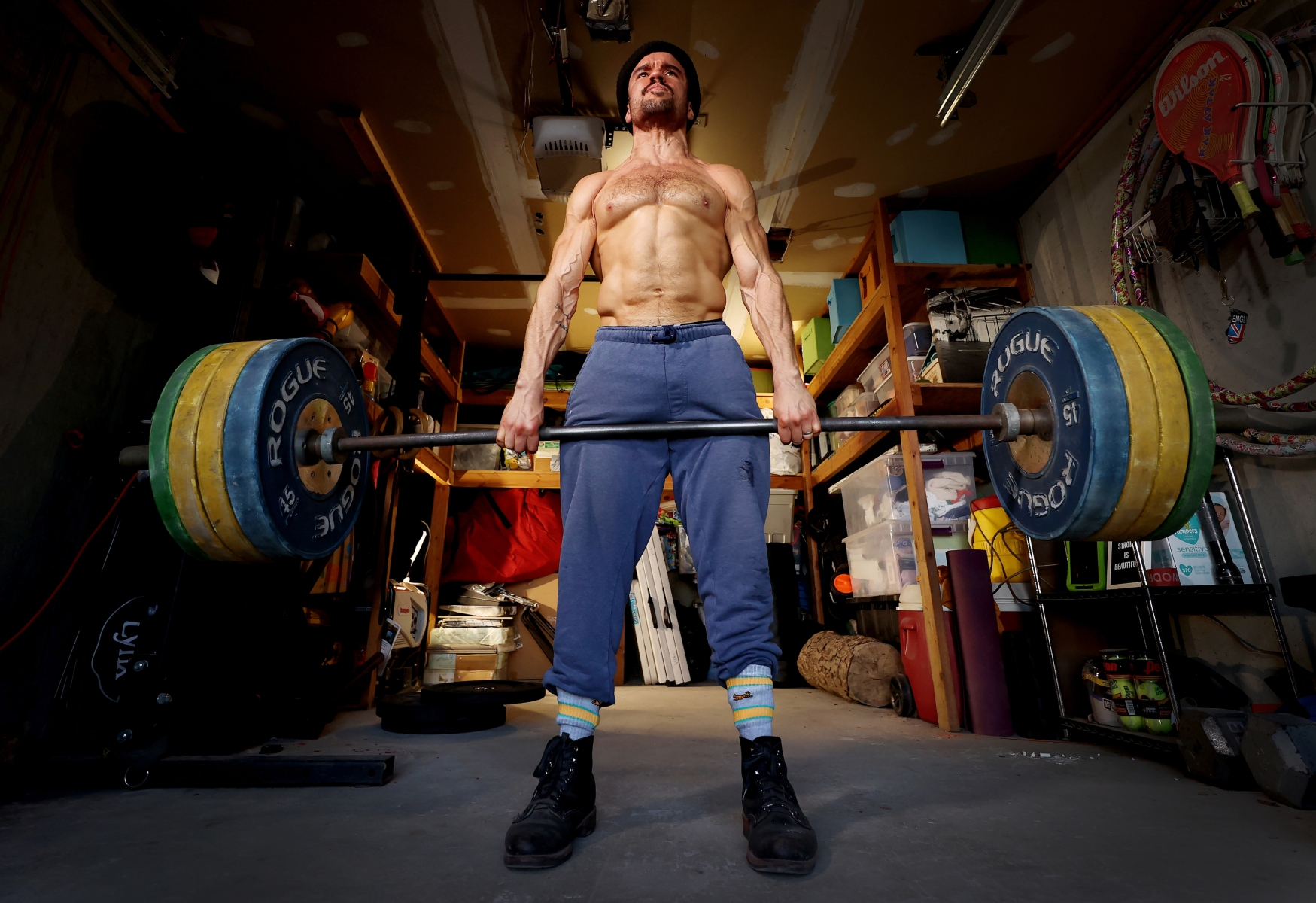 EXHIBIT AWARD - Sarah Stier – Getty Images – “Home Gym Portrait” - Dennis Silverback Guerrero deadlifts in his garage-turned-home-gym in Long Beach, New York, on November 21, 2020. Guerrero, who owned a CrossFit gym before the COVID-19 pandemic, now coaches members online as part of a new virtual fitness community.