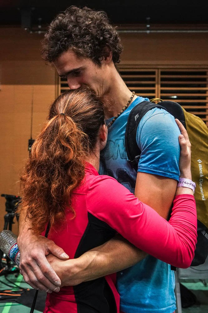 1ST PLACE - Chang W. Lee – The New York Times – “Adam Ondra’s Race to the Top” - Adam Ondra was comforted by Iva Vejmolova, his girl friend, after the competition during 2019 IFSC CLIMBING WORLD CHAMPIONSHIPS at ESFORTA ARENA, Hachioji, Japan on Aug. 19th, 2019. Ondra expected to claim a berth in the Olympic field during the world championships, but instead earned nothing but the consolation of his girlfriend, Iva Vejmolova, when he was disqualified.