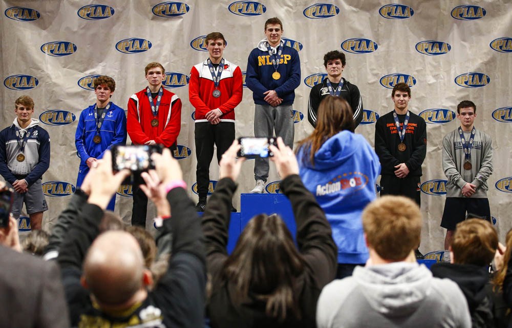 2ND PLACE - Saed Hindash – NJ Advance Media – “Two-time champion” - Andrew Cerniglia, center, achieved his quest to be a two-time state champion. Here, he poses for a photo after winning his second state championship at 160 pounds during the PIAA 2A individual wrestling championship finals on March 7, 2020.