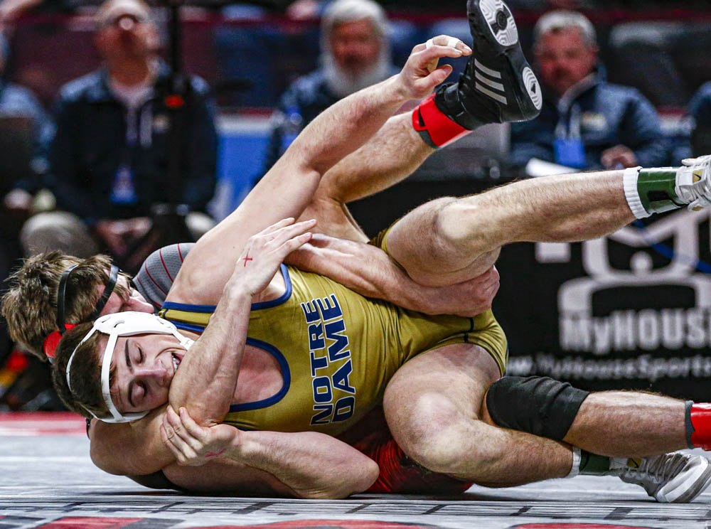 2ND PLACE - Saed Hindash – NJ Advance Media – “Two-time champion” - Notre Dame's Andrew Cerniglia and Frazier's Thayne Lawrence wrestle during their 160-pound bout of the PIAA 2A individual wrestling championship finals on March 7, 2020.