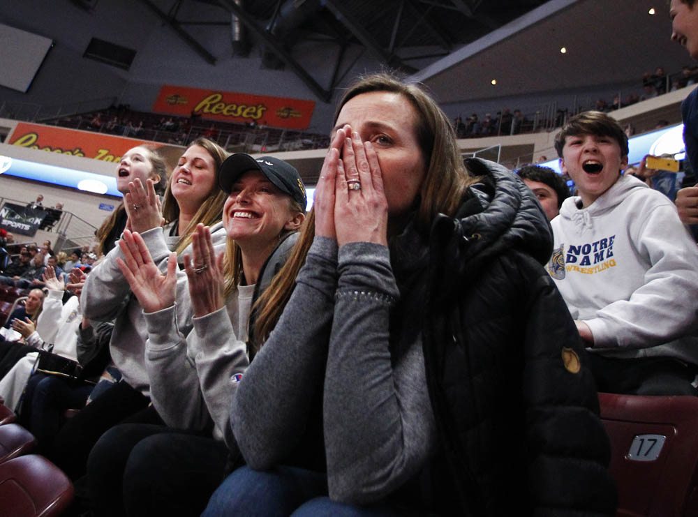 2ND PLACE - Saed Hindash – NJ Advance Media – “Two-time champion” - Anxious and on the edge of her seat, Andrew's mom Deb looks on as he faces Frazier's Thayne Lawrence during their 160-pound bout during the PIAA 2A individual wrestling championship finals on March 7, 2020.