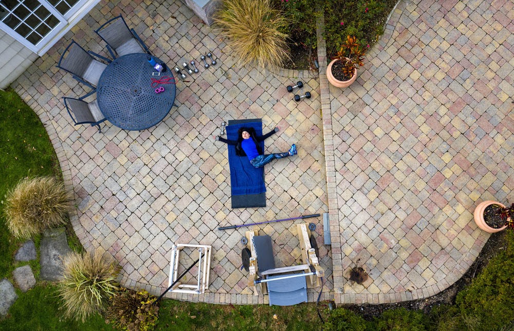 3RD PLACE - Al Bello – Getty Images – “Gym Goes Virtual to Adapt to Corona Pandemic” - An aerial view of Debbie Krueger exercising in her backyard with her virtual Fitness Trainer Dennis Guerrero on November 17th, 2020 in Hewlett Harbor, New York. In March of 2014, Dennis Guerrero and his business partner opened a gym on Long Island. The pair shared a passion for fitness, a dream of creating a local community of like-minded people and a willingness to take a risk. Over the next six years, hundreds of members experienced and embraced a unique environment that fostered a palpable energy, helping athletes of all ages and abilities reach their potential. The gym became a place to share achievements, work through losses and overcome illness. But like so many other businesses, it seemingly had no way of overcoming the financial impact and ongoing uncertainty of a global pandemic. With the arrival of Covid-19, the gym shut its doors back in March, with no idea when it would reopen. The owners, though, were far from done. They lent out every piece of equipment they owned to the gym’s members, continued to pay their staff and worked to set up outdoor classes in hopes of keeping their membership active and healthy. As the shutdown stretched on, it became clear that the physical gym was closed for good. They have since reinvented themselves and are now called Life Outside the Box. Their business model has changed drastically, and all their workouts have gone virtual. The workouts are conducted by a small group of fitness trainers led by Guerrero. The members pay a monthly fee and can take live Zoom fitness classes. They are coached by the virtual trainers in real time. More and more people have reconstructed their garages, spare rooms, backyards, and basements into home gyms since the COVID-19 pandemic hit the United States.