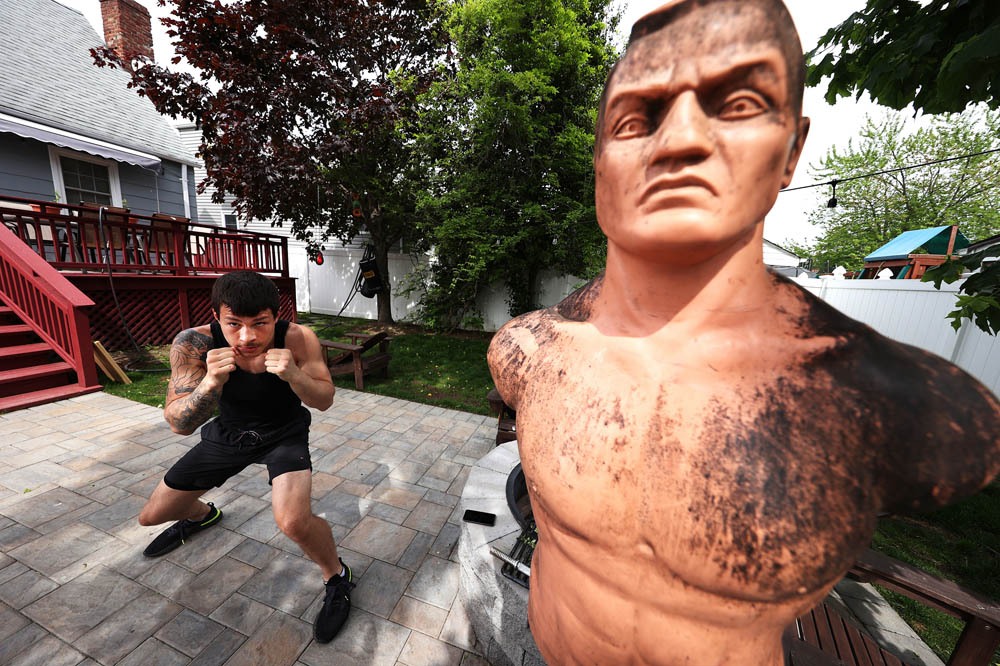 HONORABLE MENTION - Al Bello – Getty Images – “Local Amateur Boxers Continue to Train During Pandemic” - Zach Blumberg shadowboxes in his backyard next to a training dummy he has named Bob on May 18, 2020 in Oceanside, New York. Blumberg, an amateur boxer who fought in the New York City Golden Gloves, was training to compete in this year's Golden Gloves tournament which was cancelled due to the coronavirus pandemic. The Freeport Boxing Club, the gym Blumberg fights for, has been closed since March 16th due to the coronavirus (COVID-19) pandemic. Until the gyms are deemed safe to open, Blumberg will continue to train at home in hopes of boxing later this year.