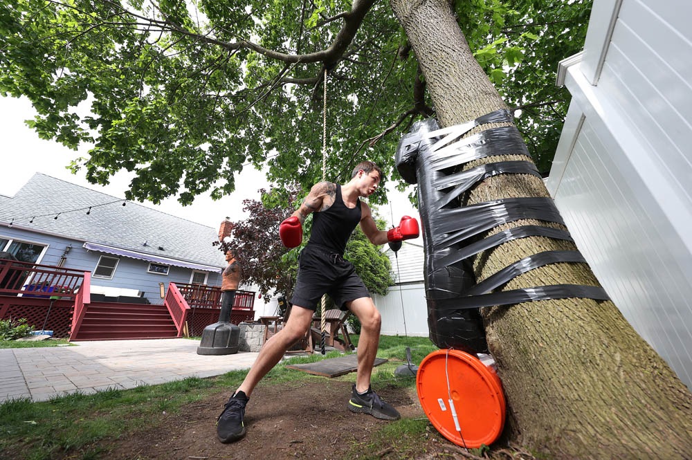 HONORABLE MENTION - Al Bello – Getty Images – “Local Amateur Boxers Continue to Train During Pandemic” - Zach Blumberg punches a homemade heavy bag he attached with duct tape to a tree in his backyard on May 18, 2020 in Oceanside, New York. Blumberg, an amateur boxer who fought in the New York City Golden Gloves, was training to compete in this year's Golden Gloves tournament which was cancelled due to the coronavirus pandemic. The Freeport Boxing Club, the gym Blumberg fights for, has been closed since March 16th due to the coronavirus (COVID-19) pandemic. Until the gyms are deemed safe to open, Blumberg will continue to train at home in hopes of boxing later this year.