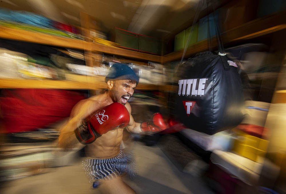 HONORABLE MENTION - Al Bello – Getty Images – “Local Amateur Boxers Continue to Train During Pandemic” - Amateur Boxer Dennis Guerrero, trains in his garage on November 8th, 2020 in Long Beach, New York. Guerrero had competed in the New York Golden Gloves last year and was training for this year’s tournament before the COVID-19 Pandemic forced all sports to shut down.
