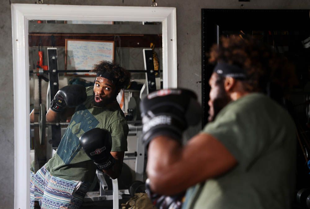 HONORABLE MENTION - Al Bello – Getty Images – “Local Amateur Boxers Continue to Train During Pandemic” - Khamall Dunkley shadowboxes in in front of a mirror at his training partner's garage on May 20, 2020 in Freeport New York. Khamall is an amateur boxer who fought in the New York City Golden Gloves and made the quarter finals in the Novice 141 lbs class. He was training to compete in this year's Golden Gloves in the Open Class, but the tournament was cancelled due to the coronavirus pandemic. The gym he fights for, the Freeport Boxing Club, has been closed since March 16. Until gyms are deemed safe to open, he continues to train at home with the hope that he can box again later this year.
