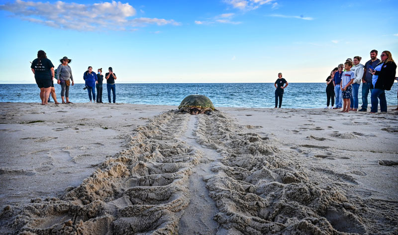 Going home. - Queen, a 380-lb loggerhead turtle rescued in July, by the NY Marine Rescue Center is released back to the sea, after treatment, in the waters off of Hampton Bays on the afternoon of October 7, 2021