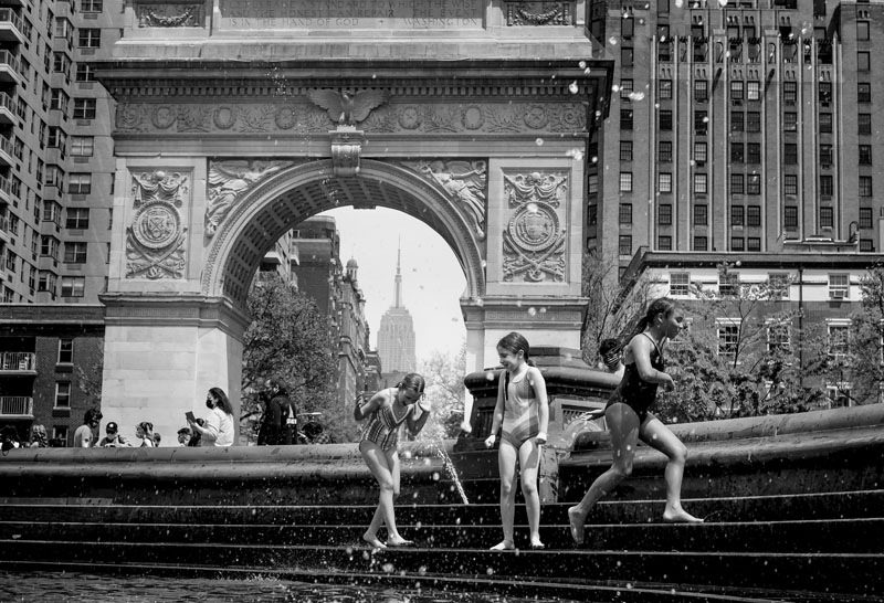 Children play in the fountain in Washington Square Park as temperatures reached near 80 degrees on a an early spring day in New York, New York, USA, on 28 April 2021.