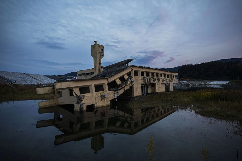 A building damaged by the earthquake and tsunami sits near the Taakatamatsubara Tsunami Memorial Park in Rikuzentakata, October 19, 2020. The city of Rikuzentakata kept the building, Rikuzentakata Youth Hostel, and restored as a memorial to the disaster. Even though almost 10 years has past, the sadness remains in the memorial park.