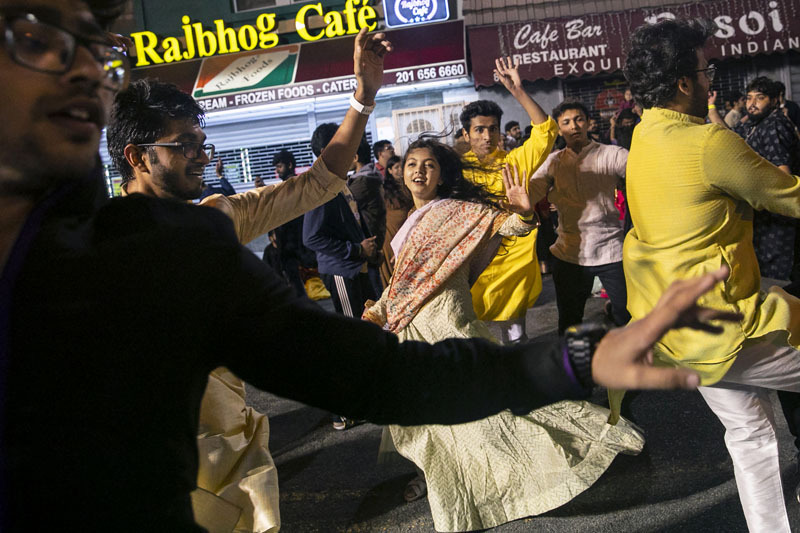 Thousands of people dance and celebrate the Hindu festival of Navratri along Newark Ave. in Jersey City. Sunday, October 10, 2021. Jersey City, N.J.