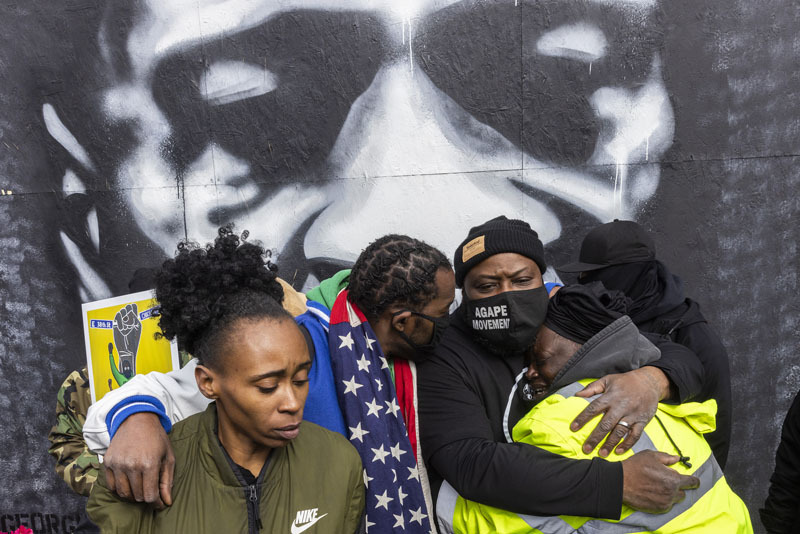 People react to the verdict of the Derek Chauvin trial at George Floyd Square, Minneapolis. 20 April 2021.