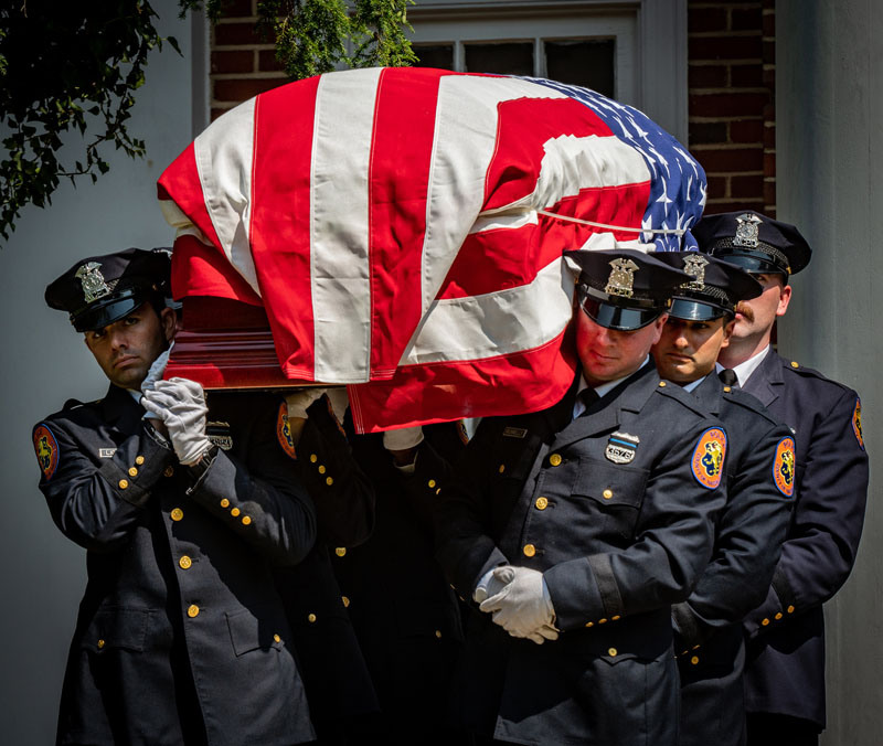 Police, family and loved ones honor Nassau County Police Officer Matthew Perlungher during his funeral service at Garden City Community Church in Garden City. Officer Perlungher perished of 9/11 related disease. Wednesday Aug. 11, 2021