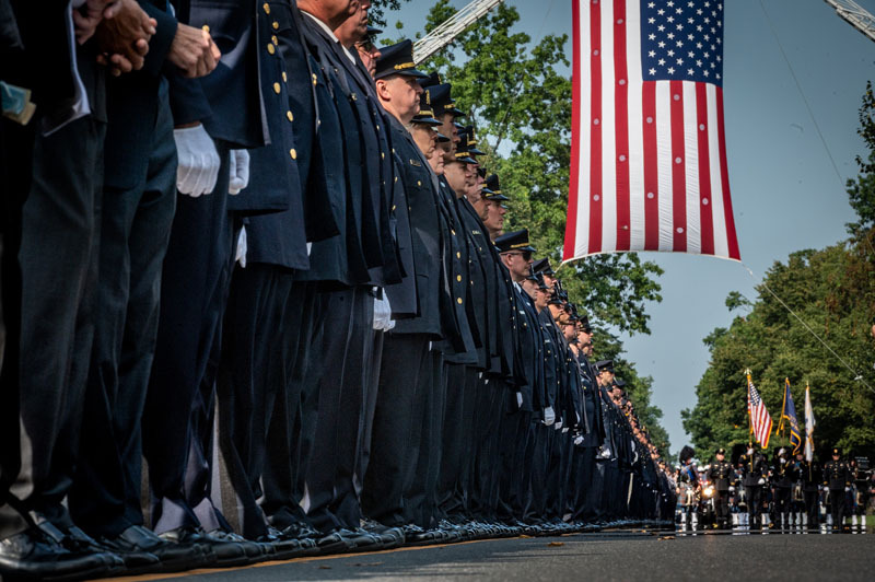 Police, family and loved ones honor Nassau County Police Officer Matthew Perlungher during his funeral service at Garden City Community Church in Garden City. Officer Perlungher perished of 9/11 related disease. Wednesday Aug. 11, 2021