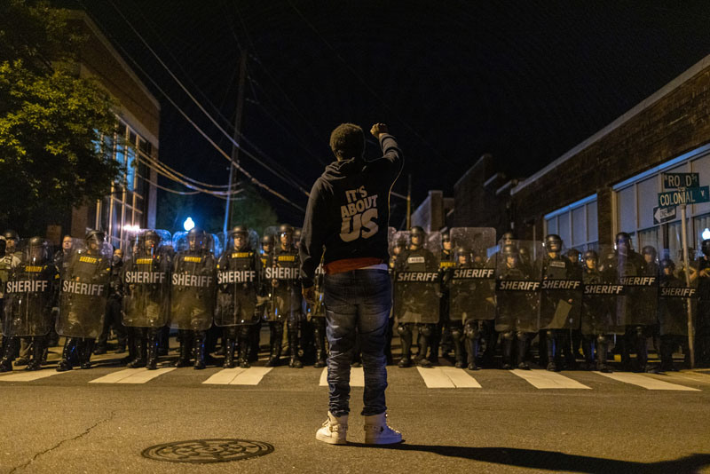 Law Enforcement enforce a curfew, making several arrests, as people protest the death of Andrew Brown Jr. outside of Pasquotank County Sheriff’s, Elizabeth City, North Carolina. 29 April 2021.