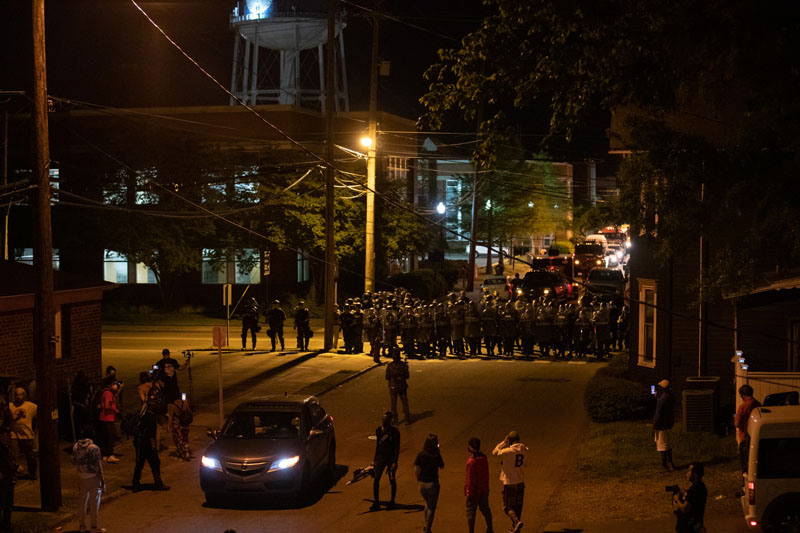 Law Enforcement enforce a curfew, making several arrests, as people protest the death of Andrew Brown Jr. outside of Pasquotank County Sheriff’s, Elizabeth City, North Carolina. 29 April 2021.