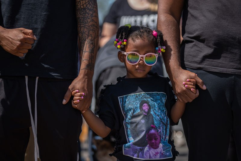 Dranae Dunbar, daughter of Andrew Brown Jr marches as The family of Andrew Brown Jr. join people for the March 4 Criminal Justice Reform in Elizabeth City, North Carolina. 02 May 2021. Andrew Brown Jr. was fatally shot dead by Pasquotank County Sheriff’s deputies.