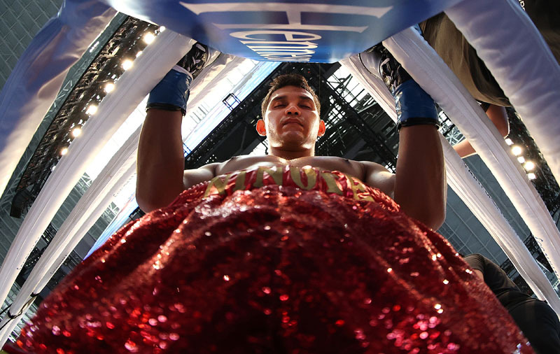 ARLINGTON, TEXAS - MAY 08: Christian Alan Gomez Duran prays in his corner against Xavier Wilson, before their welterweight fight at AT&T Stadium on May 08, 2021 in Arlington, Texas.