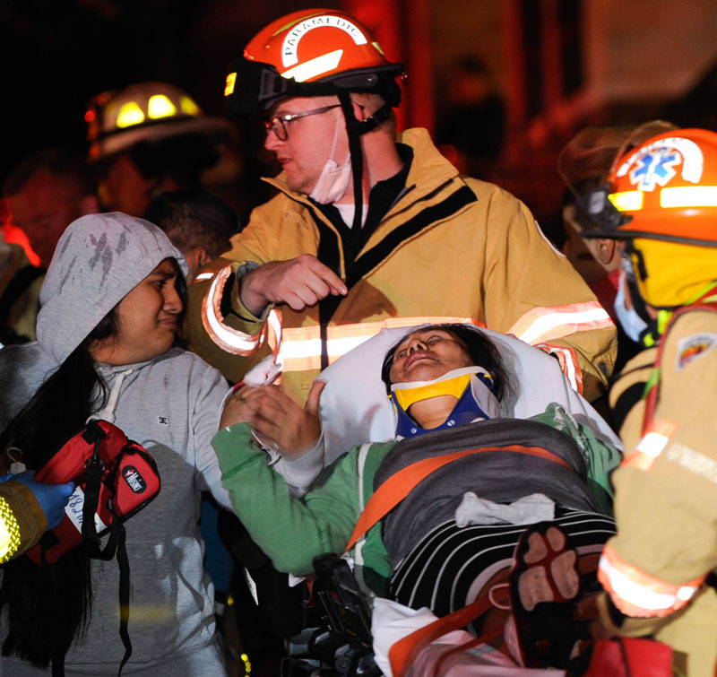 A woman becomes emotional after firefighters rescued two toddlers and fourteen others hurt on November 2.2021.